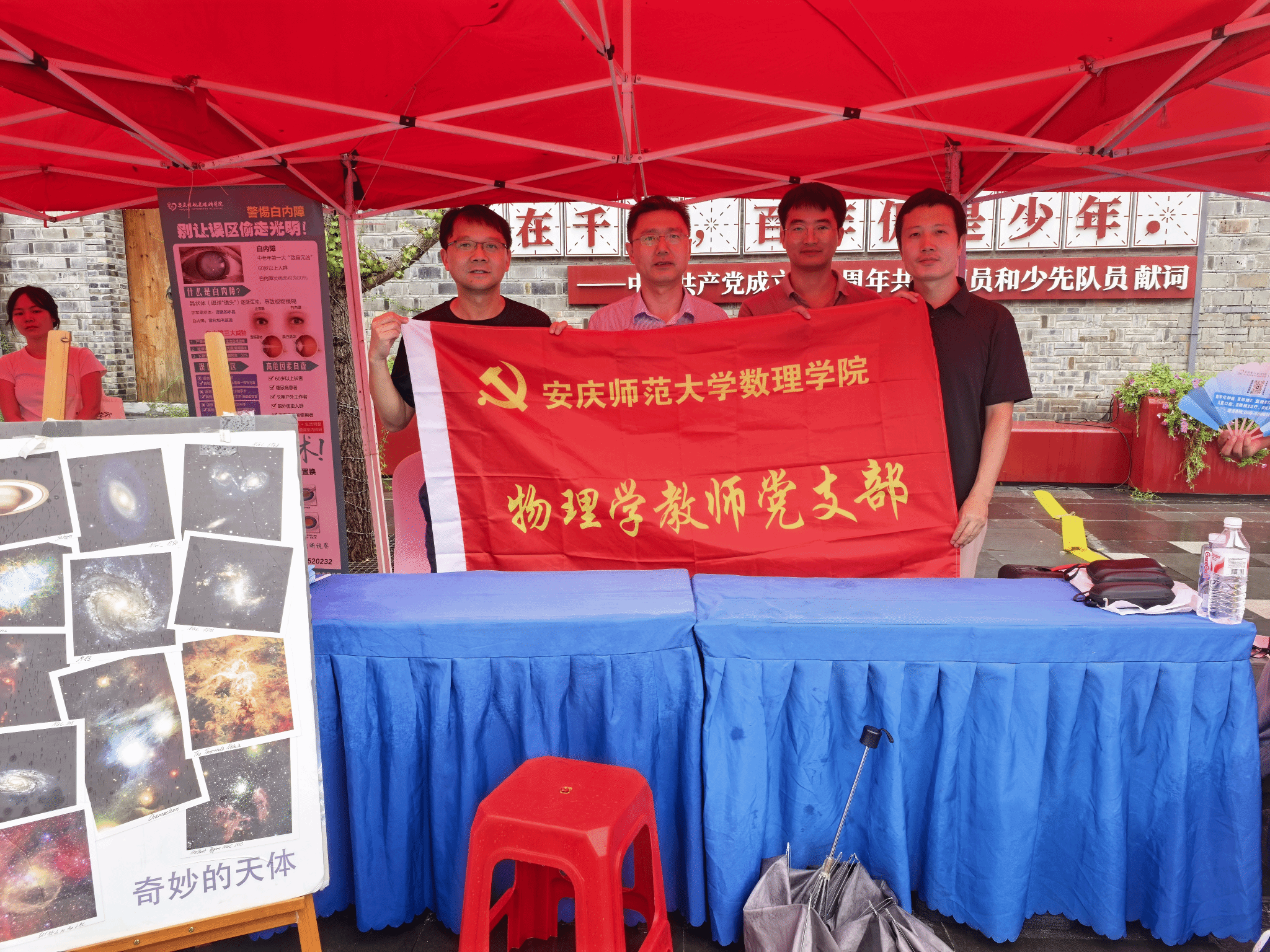 9月13日,学院物理学教师党支部走进迎江区首届大南门科普市集,开展了一场生动有趣的天文科普志愿服务活动。学院党委书记陆健、支部党员教师及大学生天文爱好者协会的学生志愿者共同参与此次活动。