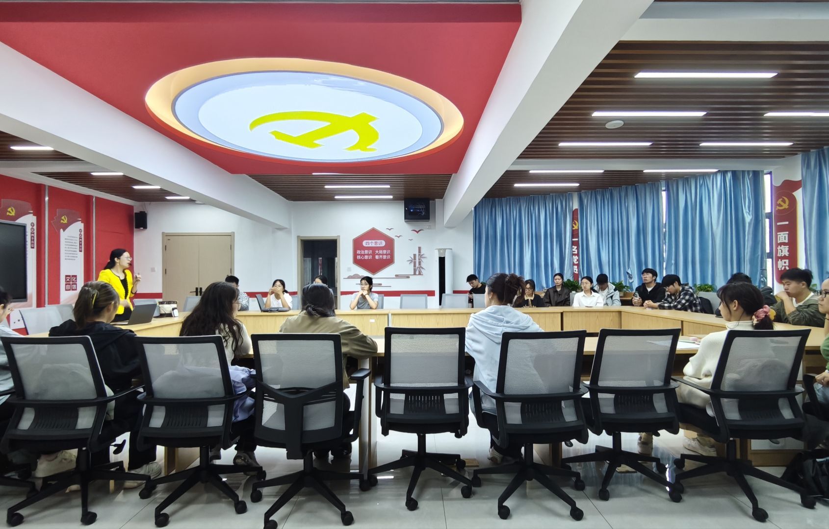 李薇薇从中国共产党的历史贡献与发展历程入手,通过回顾百年历史,学习从中提炼出的宝贵历史经验:必须坚持党对一切工作的领导;必须坚持马克思主义的指导地位;必须始终践行党的初心使命;必须坚持独立自主;必须坚定不移推进党的伟大自我革命。通过阐释了中国共产党的阶级性、先进性、代表性等性质,讲解了全心全意为人民服务的根本宗旨,并系统介绍了党的指导思想及其发展脉络,帮助同学们从理论根基上深化对党的认识。