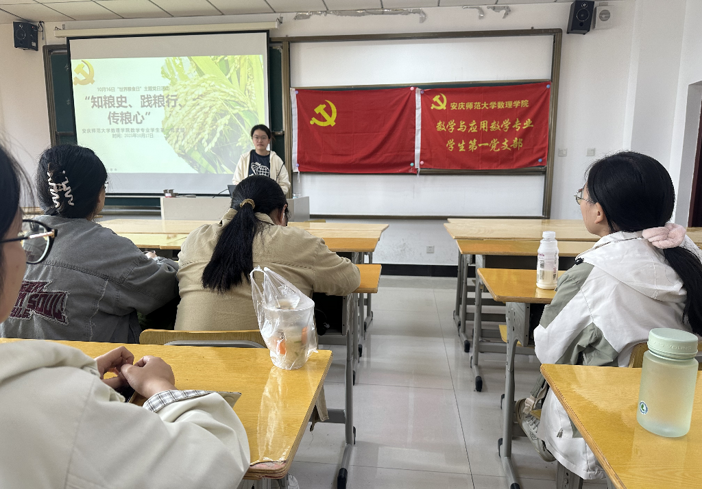 10月16日,恰逢第45个世界粮食日,数理学院数学专业第一党支部以“知粮史·践粮行·传粮心”为主题开展党日活动。