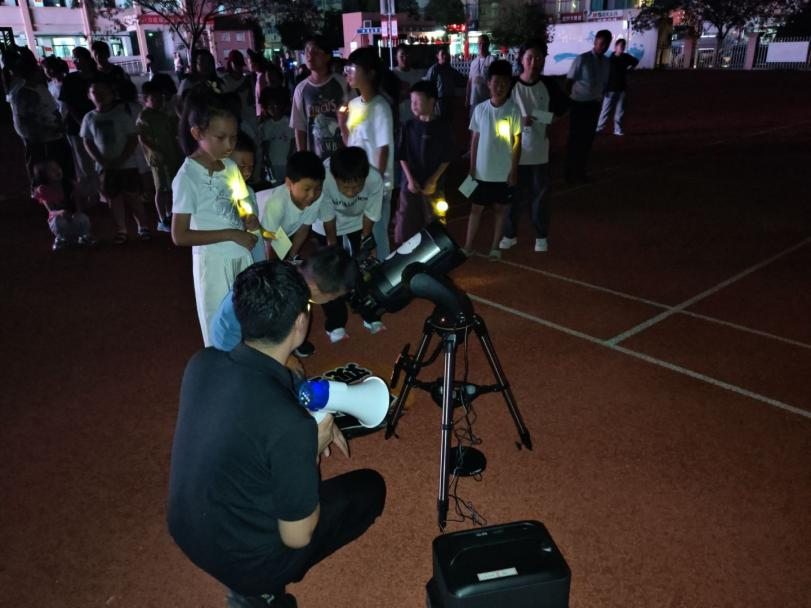 徐骏博士带领天文爱好者协会团队面向当地50余名中小学生开展了公益科普服务活动,通过生动形象的的报告和专业设备的展示,孩子们得以亲眼目睹月球环形山、土星环等天体特征,在探索宇宙的过程中激发了科学兴趣。这种将专业观测与科普服务相结合的模式,体现了我校大学生的专业素养与社会责任担当。