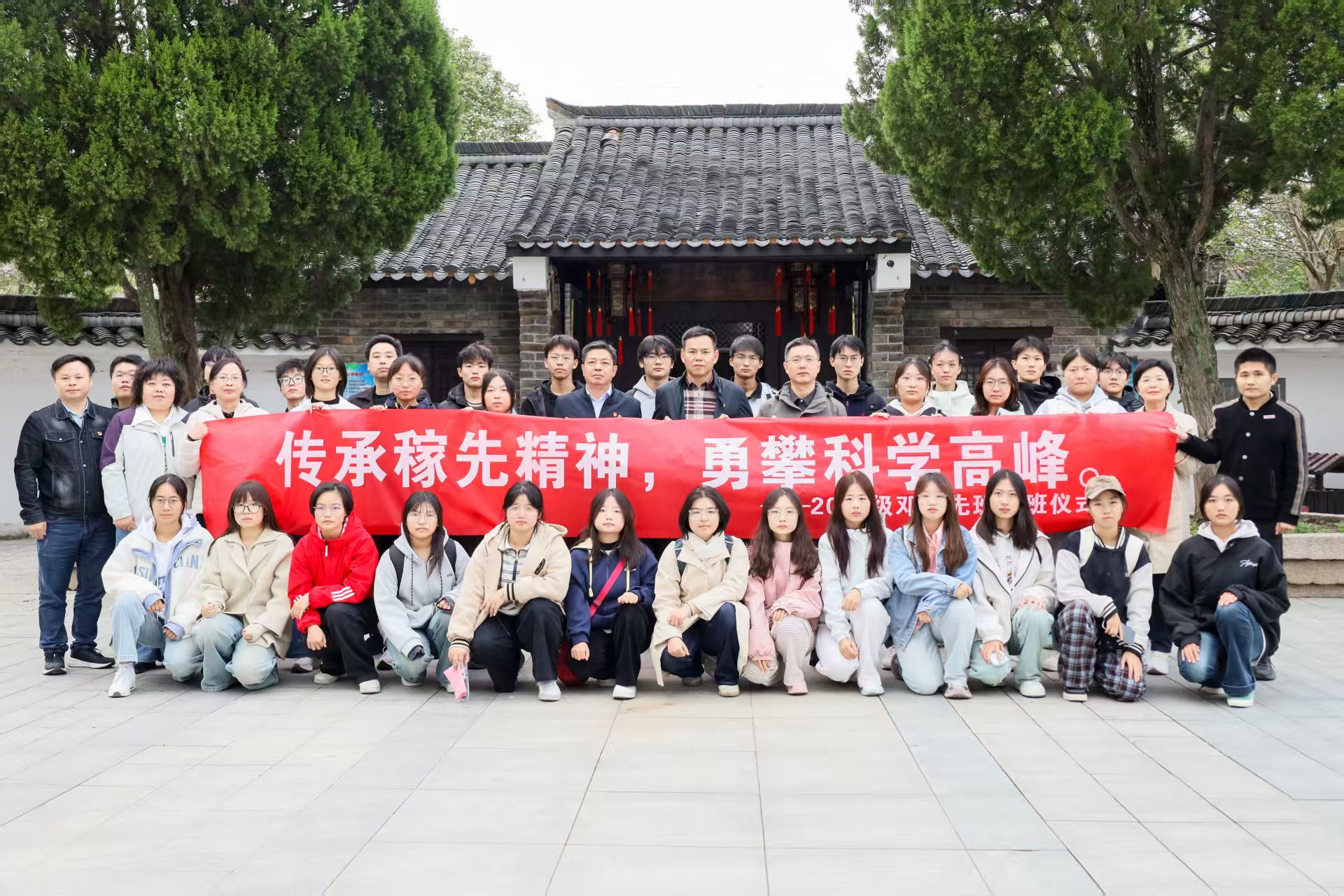 10月21日,数理学院在邓稼先故居举行2025级“邓稼先班”开班典礼。教务处处长潘锦云、数理学院党委书记陆健、院长张海、副院长易明芳、党委副书记彭芳珍,以及数学系主任、物理系主任、2025级“邓稼先班”辅导员、班主任和全体60名学生共同参加。典礼由彭芳珍主持。