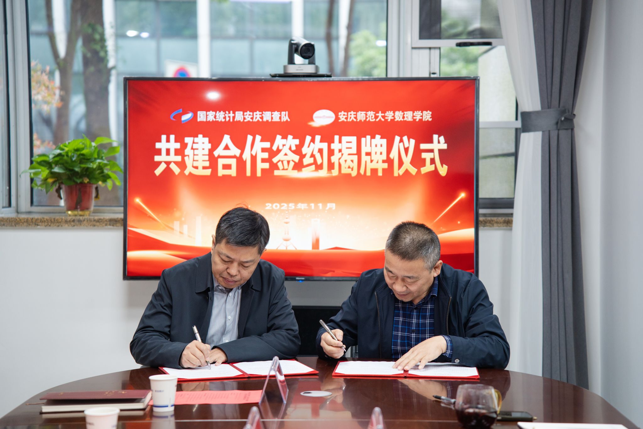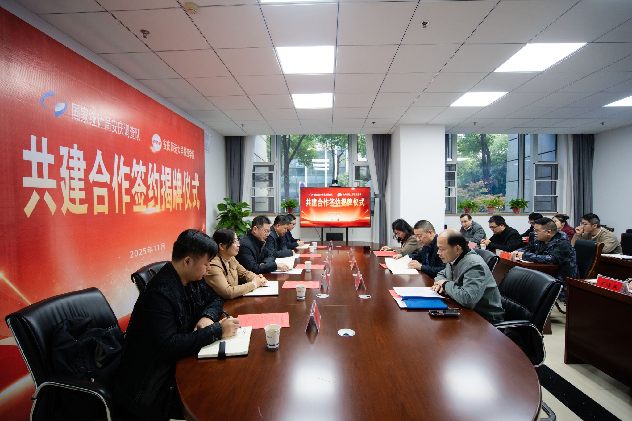 11月12日,数理学院赴国家统计局安庆调查队开展共建合作基地签约揭牌仪式。国家统计局安庆调查队党组书记、队长方二兵,副队长李胜利,纪检组组长栗婧娟,数理学院党委书记陆健,院长张海,副院长易明芳、殷周平,院长助理陈文兵,双方相关科室、专业负责人等参加仪式活动。