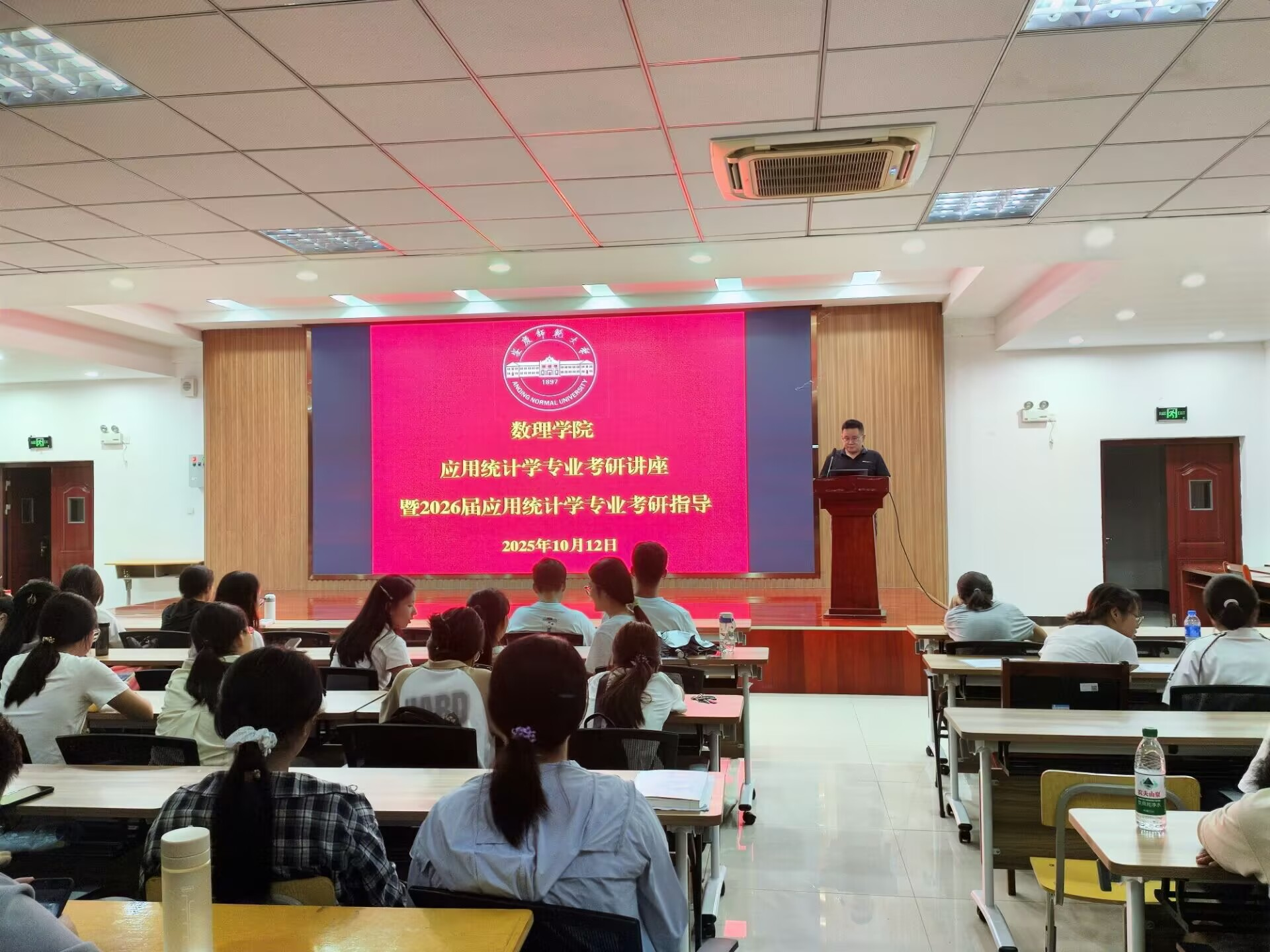 为助力2026届应用统计学专业毕业生科学规划考研路径,10月12日晚,统计系在数理学院401报告厅成功举办了2026届毕业生考研指导会。统计系主任程文韬、概率统计教研室主任戴大洋、教师代表丁承军、应用统计学专业2026届考研学生及其他年级学生参加会议。会议由戴大洋主持。